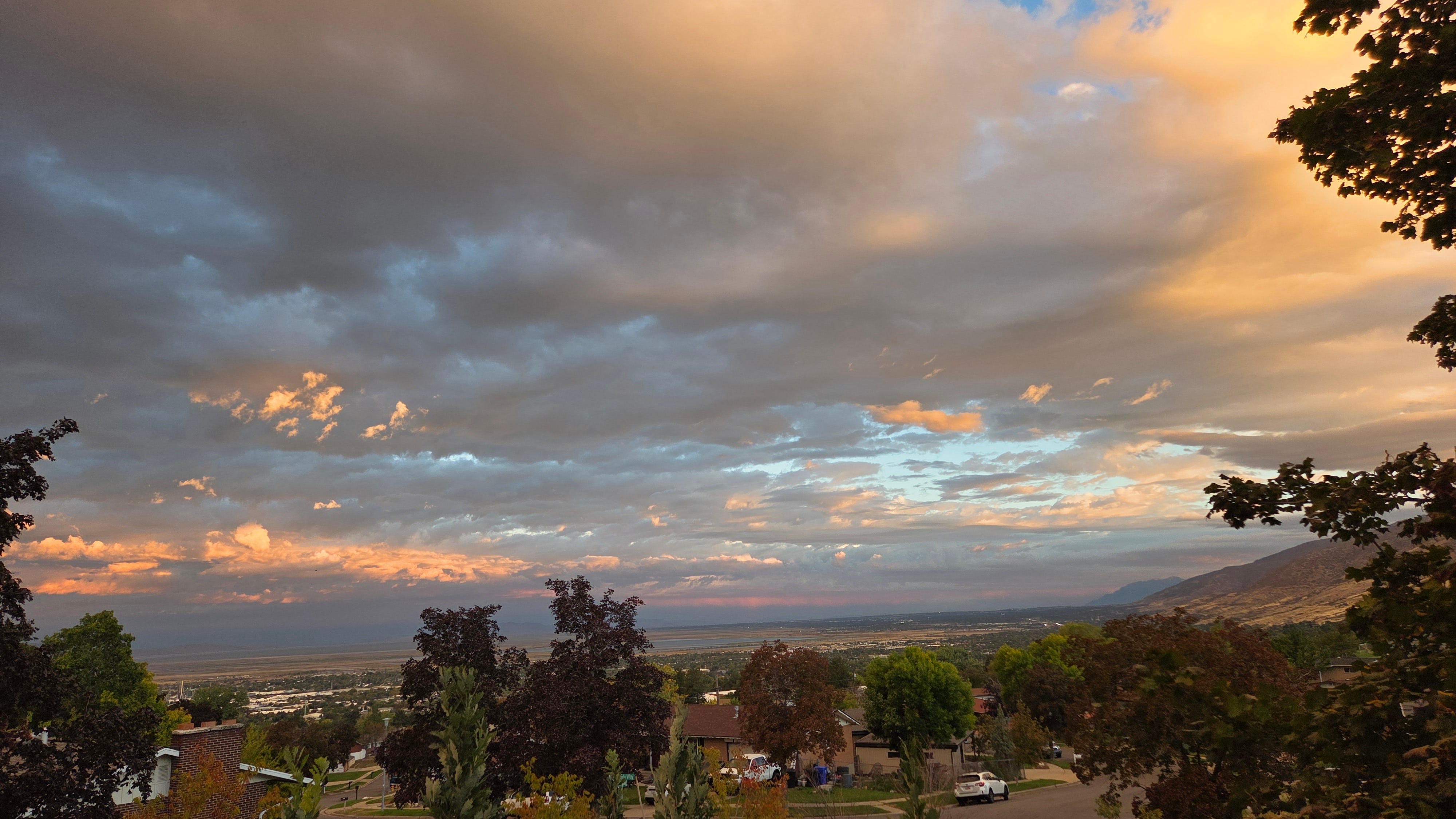 As I sit at my computer typing this, my back is to my window. I don’t even look out on a regular basis. But this morning, I couldn’t look away because the clouds with the sunrise were so breathtaking, I made my kids come look. We had a moment of presence in the golden-orange light.