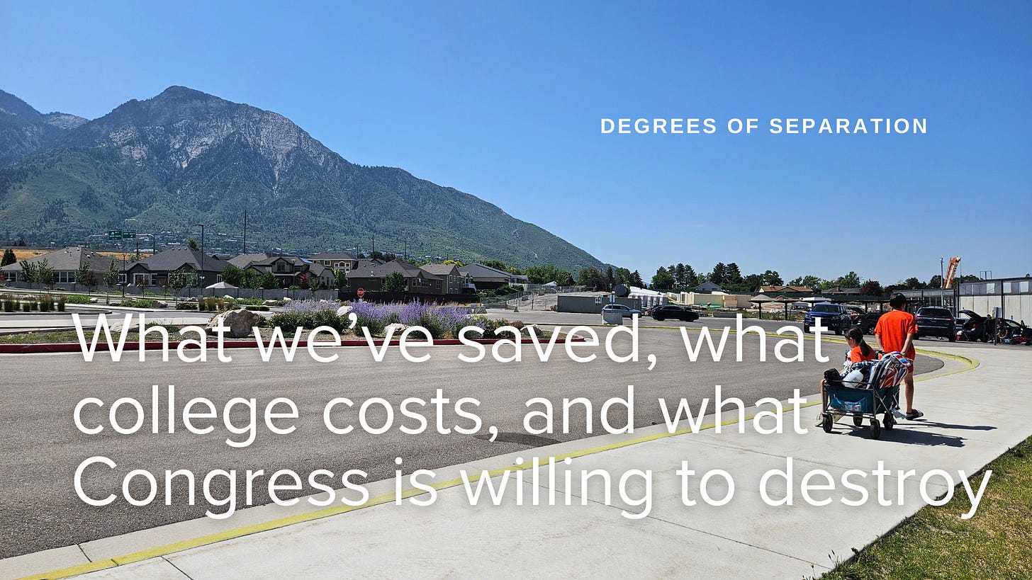 Now let’s project that into the future: factoring tuition inflation (3%/year lately, but who knows after OBBBA), total cost of attendance exceeds $200k.