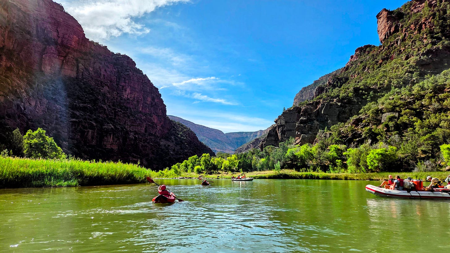 We experienced class II-IV rapids, moments of floating calm, and looked in each other’s faces as we chatted instead of at screens. We saw bald eagles, a beaver up close, and several herds of bighorn sheep. Mealtime came with swarms of wasps and laughter in our circle of folding camp chairs.