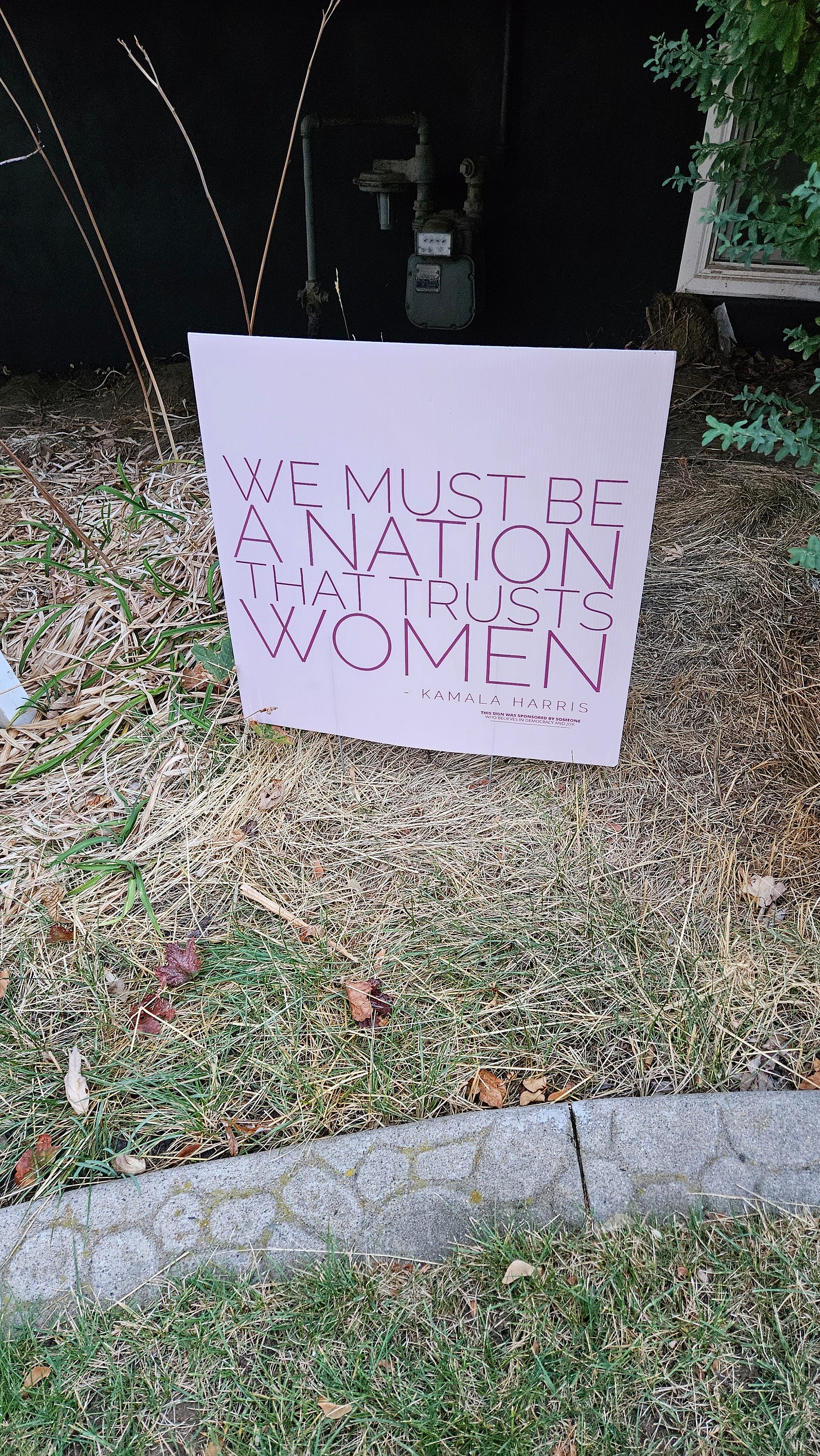 And then thereās me, who, during Halloween last year, dared to put out a garden-tucked political sign quoting Kamala Harris.
