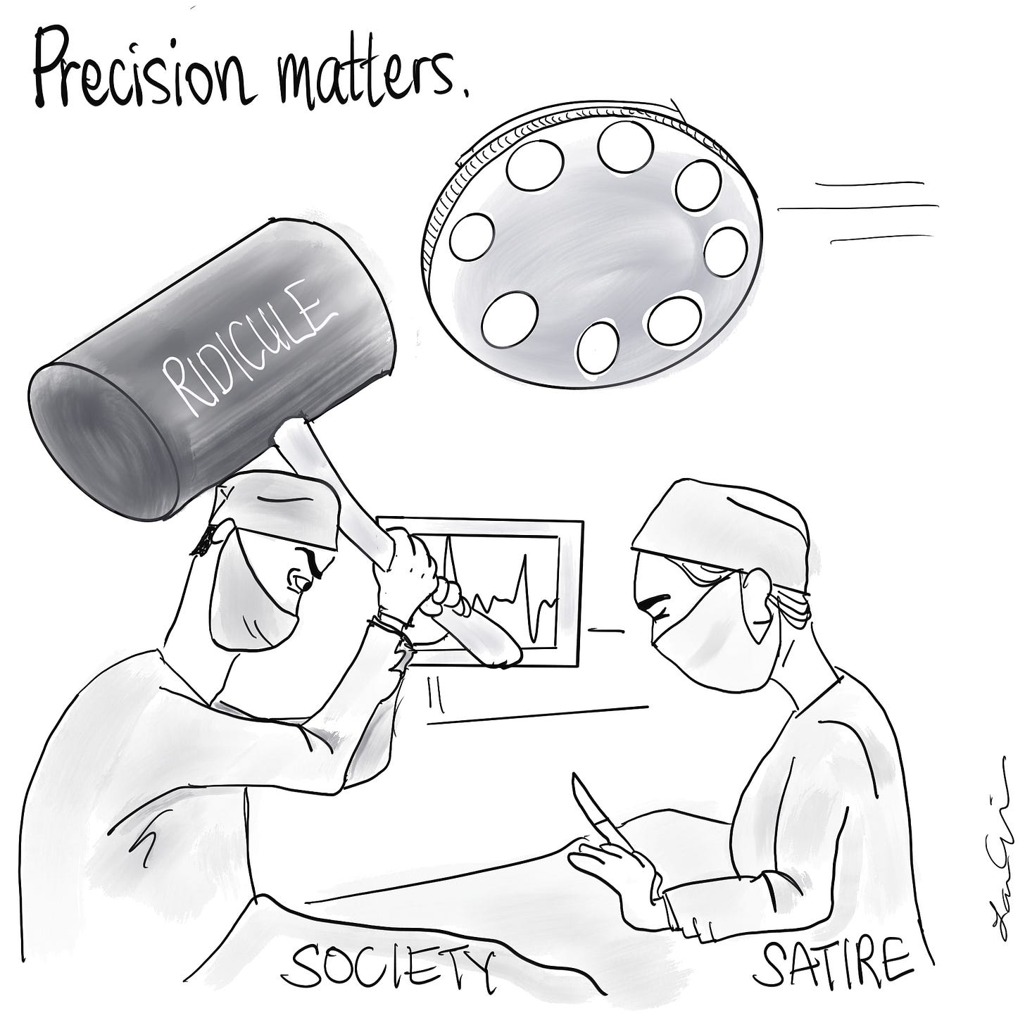 Some people can’t handle being satirized. I guess it feels like persecution? Like something unfair? Even a cruelty. But satire isn’t bullying. It’s a critique with rhythm.