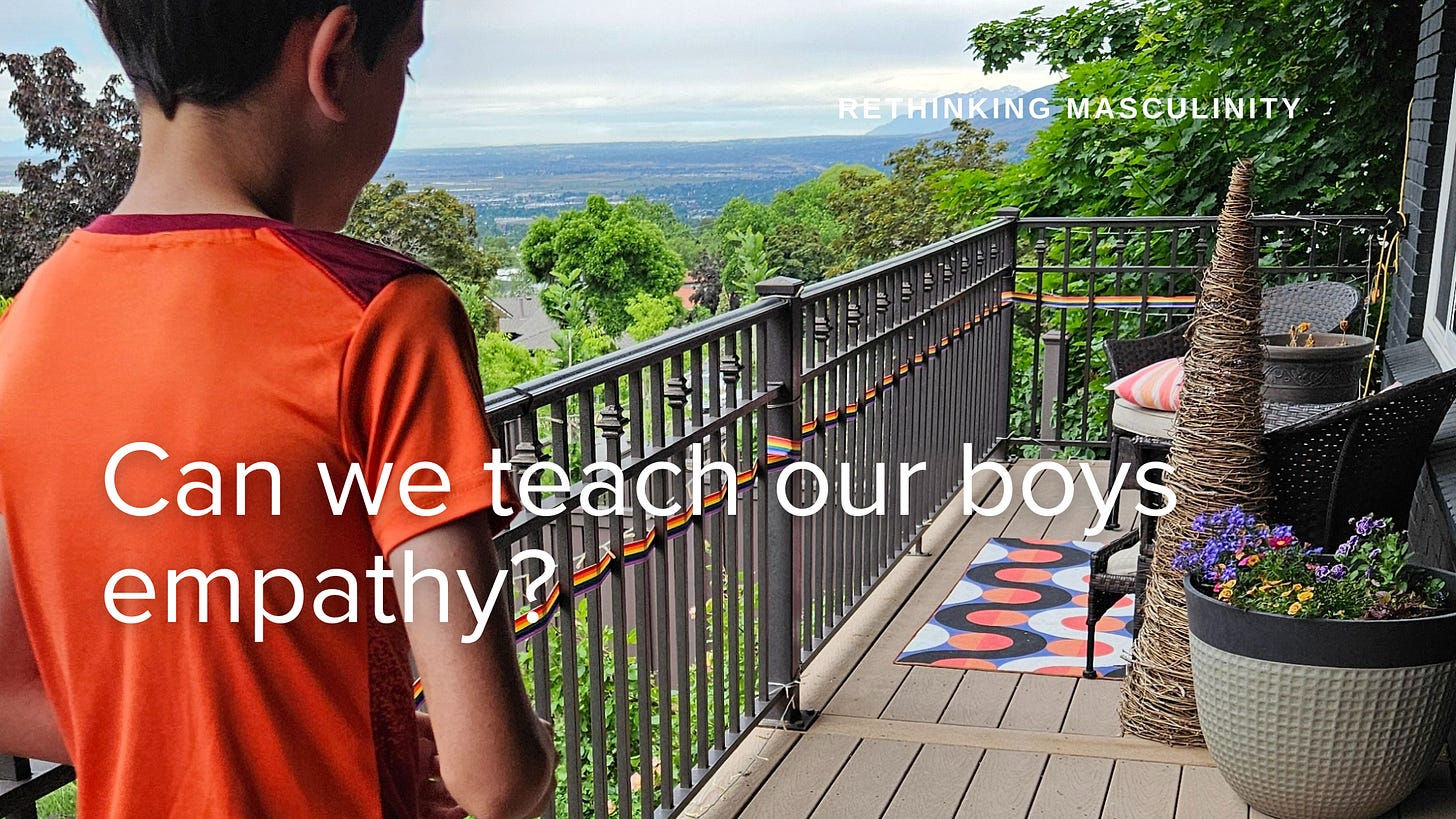 I think a fundamental question that has to be answered is "are we raising men, or are we raising people?" As we continually renegotiate our gendered constructs and spaces in society, we need to settle on what we believe are the true distinctions between genders. (And the we here means each person individually, as well as all of us as a collective society that makes laws, rules and norms.) Are there real gender differences that we are going to maintain? We've warmed to the idea that girls can be engineers. But do we also believe that girls are inherently more empathetic?